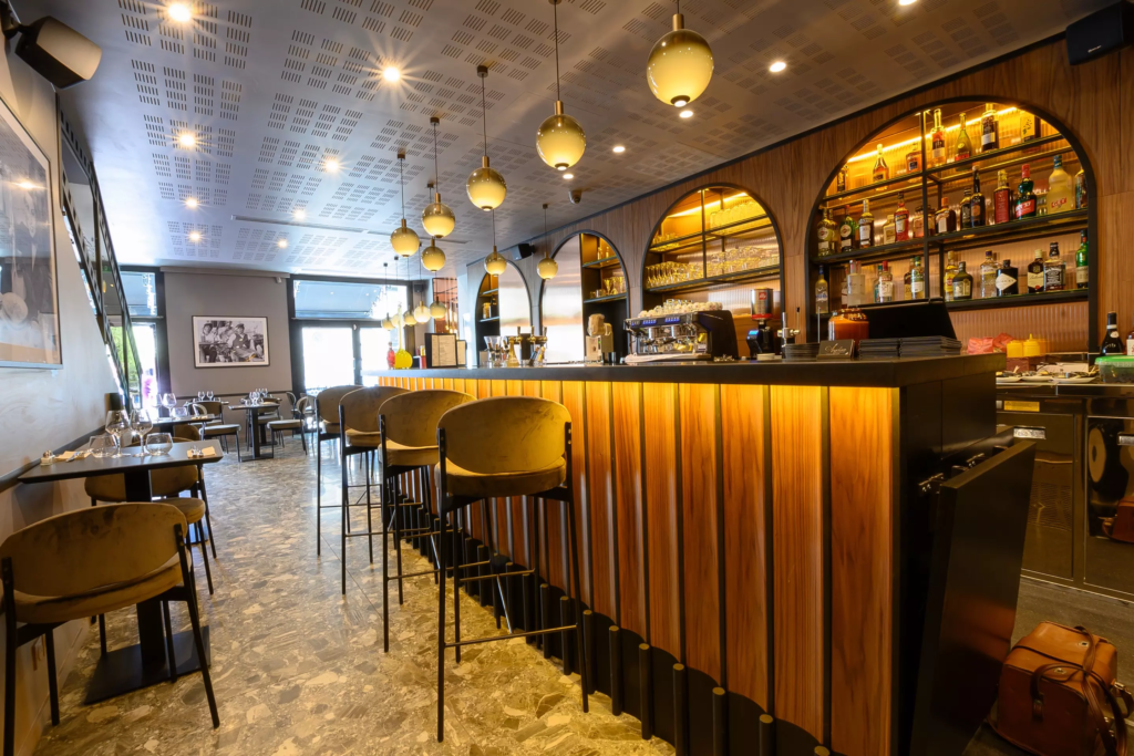 Chez Angelino, le décor agit comme une invitation immédiate au voyage. Dès l’entrée, l’atmosphère enveloppe le visiteur, rappelant ces trattorias italiennes où l’on s’attarde, où les conversations se mêlent aux parfums de cuisine et où le temps semble se suspendre.