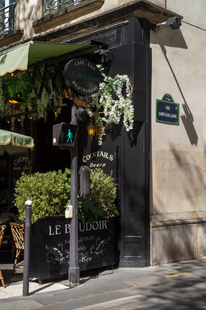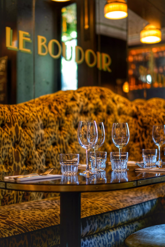 En plein quartier germanopratin, là où les façades cossues se succèdent et où les cafés historiques dessinent une certaine idée de Paris, Le Boudoir se glisse avec discrétion et élégance. La décoration, chic et cosy, compose un écrin propice à la confidence autant qu’à la célébration. Banquettes confortables, lumières tamisées, bois et matières chaleureuses : tout invite à ralentir, à s’installer, à savourer.